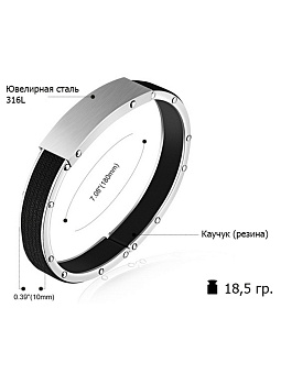 MB208 Браслет из стали с каучуковыми вставками и планкой под гравировку