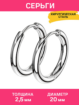 <p>Серебристые серьги в уши колечки сделаны из высококачественной ювелирной стали 316L, что делает их прочными и долговечными. Размеры изделия: диаметр - 20 мм, толщина - 2,5 мм. Их элегантный дизайн привлекает внимание и подходит как для повседневного использования, так и для особых случаев. </p><p>Эти серьги олицетворяют стиль и являются отличным аксессуаром для всех возрастов. Они подходят для ушных проколов любого типа пирсинга, что делает их универсальными и удобными. С такими серьгами вы будете выглядеть стильно и модно в любой ситуации. </p>