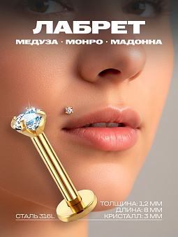 Красивые золотые лабреты с кристаллом – идеальное украшение для губы или уха. Изготовлены из высококачественного золота, они прекрасно подчеркивают вашу индивидуальность и стиль. Материал стержня – золото, толщиной 1.2 мм и длиной 8 мм. Кристалл имеет диаметр 3 мм, он сверкает и привлекает внимание своей яркостью. Эти лабреты подходят для проколов губы и уха. Добавьте шарм в свой образ с этими элегантными лабретами в золотом исполнении с кристаллом.