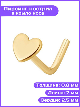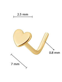Размеры: Длина 7 мм, длина загиба 2 мм, толщина 0,8 мм, сердечко 2,5 мм