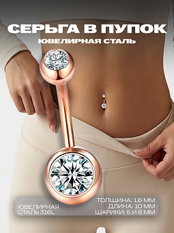 <p>Исключительный и элегантный, этот пирсинг для пупка изготовлен из престижного розового золота, придающего аксессуару дополнительный шарм и великолепное сияние. Шикарный элемент гардероба украшен ослепительными кристаллами, которые привлекают внимание к вашему стилю и добавляют изюминку вашему образу. С таким аксессуаром вам не придется беспокоиться о комфорте, так как толщина стержня is 1,6 мм, а длина - идеальные 10 мм, обеспечивая превосходную посадку и возможность его носить на постоянной основе. Шарики размерами 5 мм и 8 мм идеально гармонируют, создавая выразительный и сбалансированный дизайн. Этот украшение - настоящий тренд сезона, который подчеркивает ваш изысканный вкус и любовь к деталям.</p>