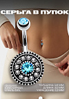 PR-PP-44 Пирсинг в пупок сережка диск с голубыми кристаллами