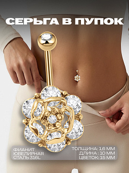 <p>Ищете изысканный и стильный аксессуар для пирсинга пупка? Представляем вам <strong>сережку-цветок</strong> из чистого золота - идеальный выбор для тех, кто предпочитает элегантность и качество. Эта сережка для пирсинга является вершиной ювелирного искусства, сочетая в себе притягательный блеск золота с утонченным дизайном.</p><p>Сережка изготовлена из золота высокой пробы, что гарантирует её долговечность и гипоаллергенные свойства. Толщина стержня составляет 1,6 мм, а его длина - 10 мм, обеспечивая комфортное ношение. На одном конце стержня находится шарик диаметром 5 мм, а на другом - привлекательный цветок диаметром 15 мм, добавляющий украшению особенный шарм. Общая длина сережки достигает 30 мм, делая её заметным и элегантным акцентом на вашем теле.</p><p>Этот пирсинговый аксессуар прекрасно подойдёт для особых случаев или для повседневного украшения вашего образа. Выбирая нашу золотую сережку-цветок, вы инвестируете в аксессуар, который будет радовать вас своей красотой и качеством на долгие годы.</p>