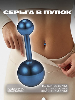 <p>Окунитесь в мир стильного боди-мода с нашим изысканным <strong>пирсингом для пупка</strong>. Этот изящный аксессуар является идеальным выбором для тех, кто желает добавить нотку индивидуальности своему образу. Манящий и завораживающий <em>синий цвет</em> пирсинга притягивает взгляды, делая ваш стиль неотразимым.</p><p>Стержень пирсинга изготовлен из высококачественного материала, имеет <strong>толщину 1,6 мм и длину 10 мм</strong>, что обеспечивает отличное прилегание и комфорт во время носки. Шарики размером <strong>3 мм и 5 мм</strong> идеально дополняют дизайн, привнося акцент в вашу уникальность.</p><p>Этот пирсинг в пупок элегантно подчеркнет красоту вашего тела и станет заметной деталью в вашем имидже. Он способен стать отличным подарком для близкого человека или же замечательным способом украсить свою коллекцию украшений для тела.</p>