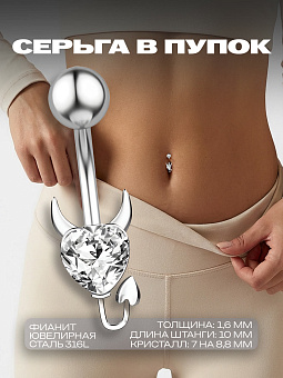 <p>Представляем вашему вниманию исключительное украшение для пирсинга — <strong>Пирсинг в пупок «Дьяволица» серебристый</strong>. Этот аксессуар привнесет нотку озорства и соблазна в ваш образ, потому что каждая деталь создана для того, чтобы подчеркнуть вашу индивидуальность и женственность.</p> <p>Изготовлен из высококачественной нержавеющей стали, этот пирсинг имеет толщину стержня <strong>1,6 мм</strong> и длину <strong>10 мм</strong>, что делает его комфортным для ежедневного ношения. Кроме того, стандартный размер позволяет легко поменять украшение в случае необходимости. Шарик декорирован <strong>5 мм</strong>, а основной кристалл занимает <strong>7 мм х 8,8 мм</strong>, придавая украшению особенный шик.</p> <p>Общая длина изделия составляет <strong>13 мм</strong>, что отлично смотрится на пупке, не перегружая его. Серебристый цвет придает украшению универсальность, позволяя его сочетать с разнообразной одеждой и другими аксессуарами.</p> <p>Этот изысканный пирсинг подчеркнет вашу смелость и добавит игривый акцент к вашей внешности. Носите его с удовольствием и не сомневайтесь в притягательности вашего стиля!</p>