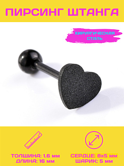 <p>Пирсинг штанга в язык черное сердце - стильный аксессуар для отважных и смелых. Изготовлен из качественного материала - ювелирной стали 316L, который не вызывает аллергических реакций и обладает высокой прочностью и долговечностью.</p><p>Штанга имеет стандартные размеры: длина стежня 16 мм, толщина стежня 1,6 мм. Сердце на штанге имеет размер 8 мм х 5 мм, а шарик - 5 мм. Черное сердце придаст вашему образу оригинальности и загадочности.</p><p>Это универсальное украшение подходит для вставки в проколы языка. Благодаря своим размерам и изысканному дизайну пирсинг штанга в язык черное сердце является стильным и неповторимым акцентом вашего образа.</p>