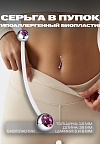 PR-SN-054 Пирсинг штанга с фиолетовым кристаллом из стали и биопластика