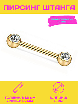 PR-SN-060 Пирсинг штанга золотая с кристаллом