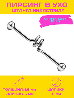 <p>Пирсинг штанга индастриал с короткой спиралью - это модный и стильный аксессуар, который подчеркнет вашу индивидуальность и оригинальность. Изготовлена из высококачественной ювелирной стали 316L, которая обеспечивает прочность и долговечность изделия. </p><p>Толщина стержня составляет 1,6 мм, что делает эту штангу подходящей для большинства типов проколов. Длина стержня составляет 36 мм, позволяя комфортно носить изделие. Диаметр шарика составляет 5 мм, что добавляет штанге эстетическую привлекательность.</p><p>Пирсинг штангу индастриал с короткой спиралью можно вставлять в проколы ушей, создавая яркий и модный образ. Она также подходит для других проколов, к которым вы испытываете симпатию и желание украсить их.</p>
