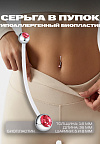 PR-SN-120 Пирсинг штанга с красным кристаллом из стали и биопластика