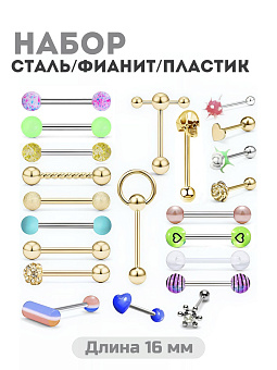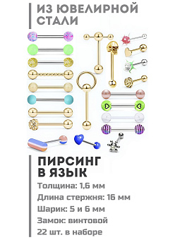 Комплектация: Пирсинг штанги 22 шт.