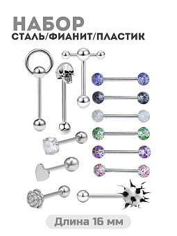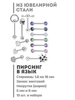 PR-SN-139-NAB Набор для пирсинга штанги 13 шт. серебристые