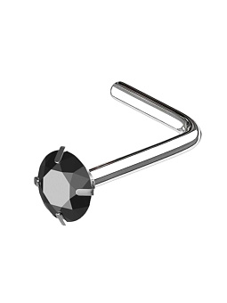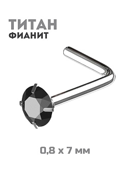 TIT-NS-006-L Пирсинг в нос нострил из титана L-образный серебристый с черным фианитом