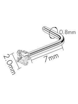 Размеры: Толщина стержня 0,8 мм, длина стержня 7 мм, фианит 2 мм
