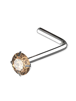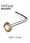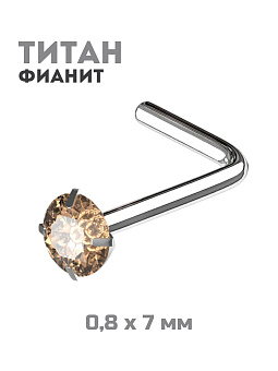 TIT-NS-007-L Пирсинг в нос нострил из титана L-образный серебристый с коричневым фианитом